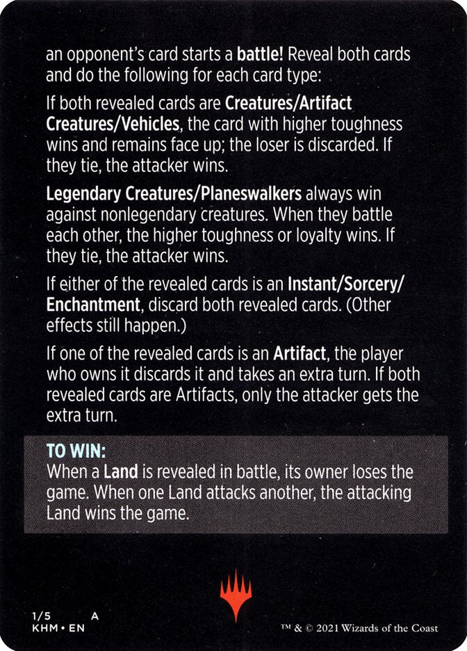 When a Land is revealed in battle, its owner loses the game. When one Land attacks another, the attacking land wins the game.